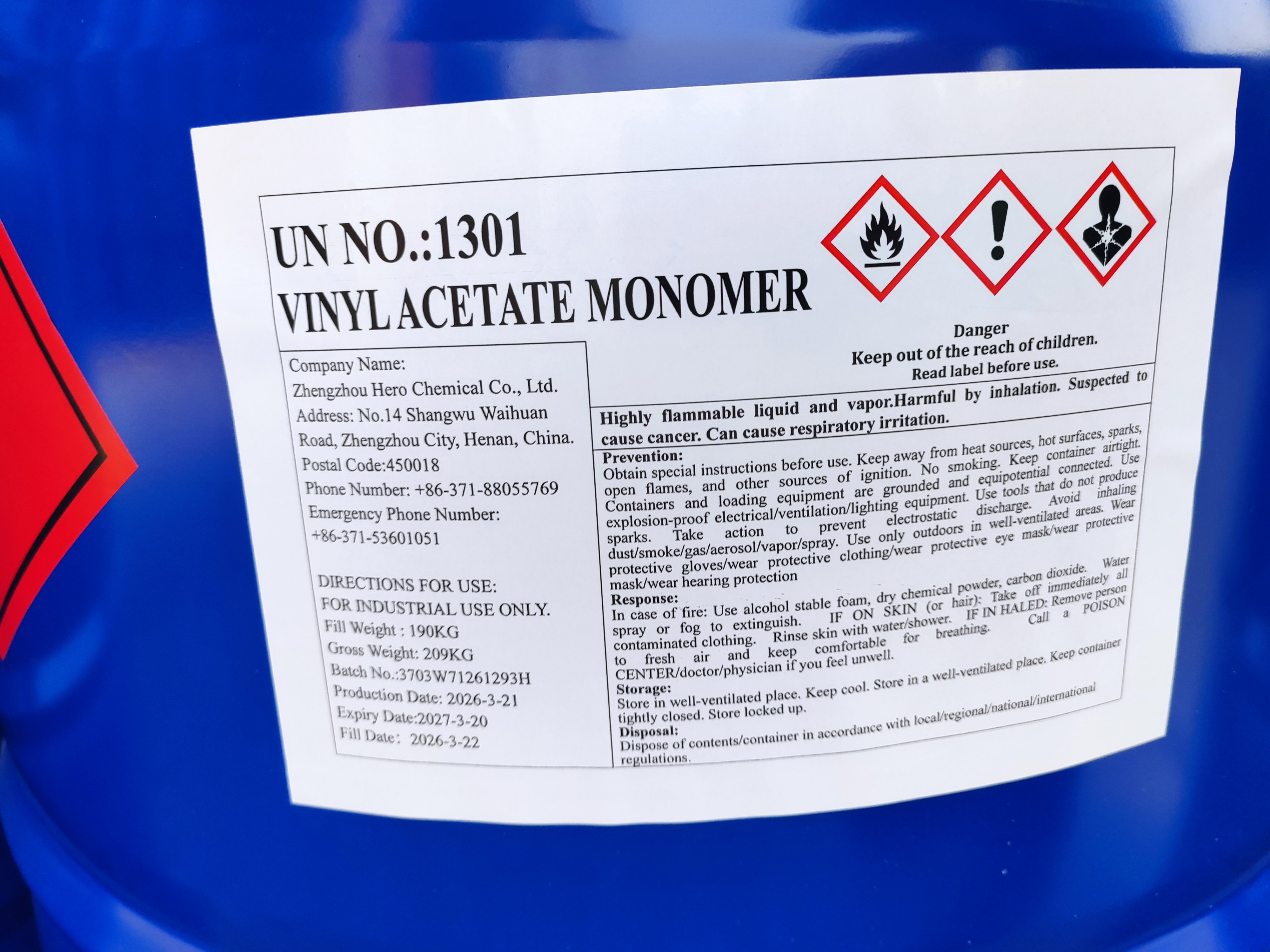 VAM in 190kg drums was loaded.
