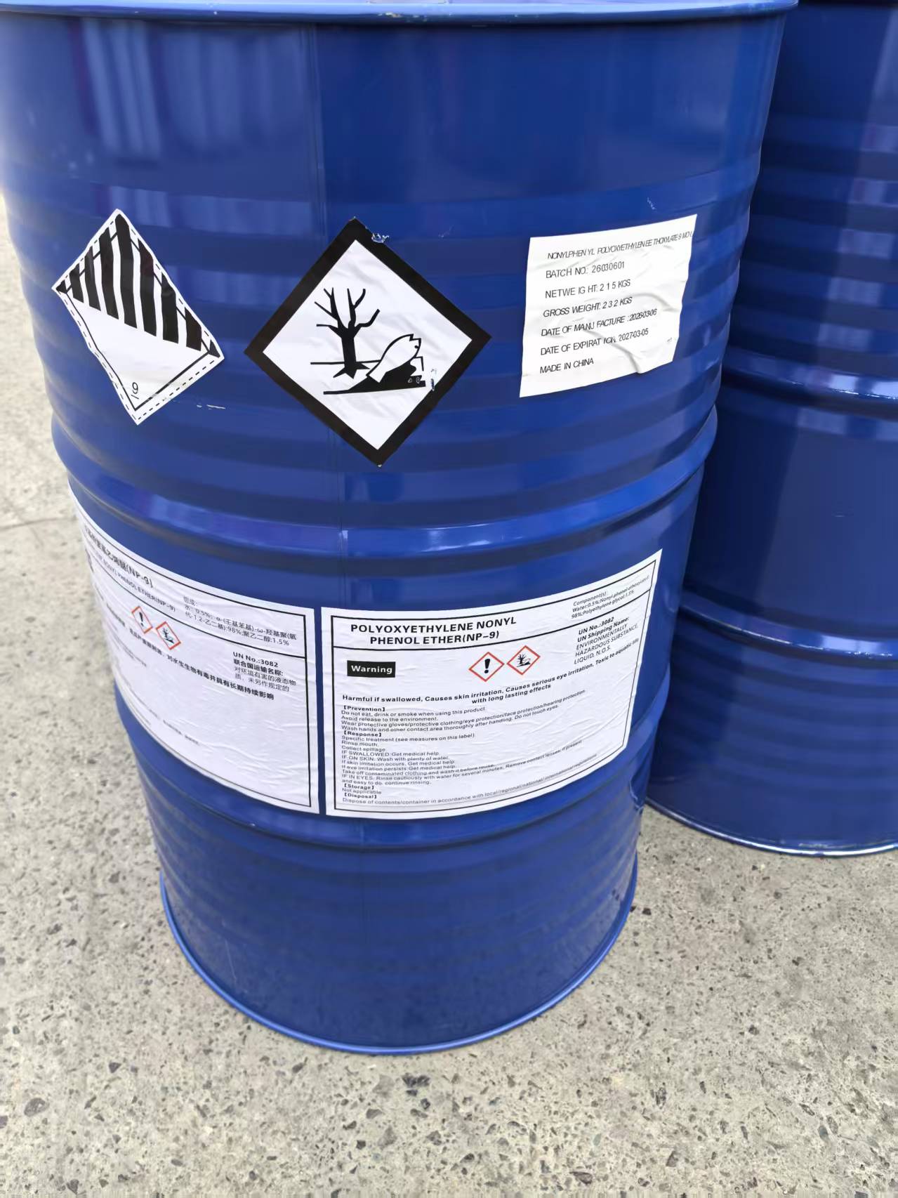 NP 9 in 215kg drums was loaded.